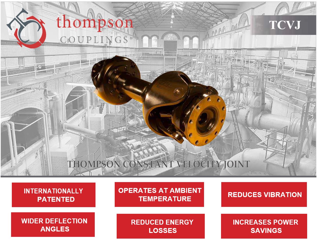 The Thompson Constant Velocity Joint (TCVJ) is a means of transmitting drive across an angled joint between driving and driven shafts with a true one-to-one ratio between the shafts.